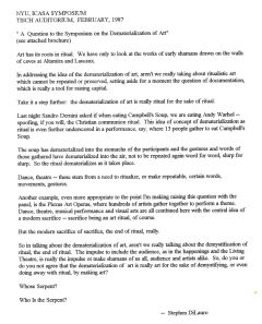 ( From the brochure of the symposium on The Dematerialization of Art, International Center for Advanced Studies in Art, New York University, 1987)
