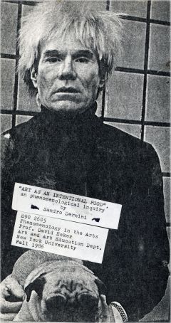 First question, how do we eat art, and if we eat art how do we digest it? Second question, how do we eat Andy Warhol dematerialized, and if we eat Andy Warhol how do we will digest him dematerialized?