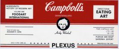 My Plexus Campboll’s Soup Can label is only an original dress, as Walter Benjamin's The Work of Art in the Age of Technical Reproducibility, to be perceive by the beholder, in particular circumstances of time and place. To view a whole Plexus Can out of its intended context is to see it distorted. It is an original work of art that is not possible to experience in another time and place as it was intended to be experienced.