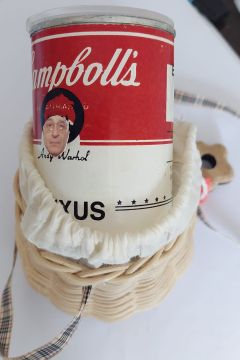 The number zero of the Plexus Campboll's Soup Cans Limited Editions I packaged inside a wicker basket handmade by Fabrizio Perini, the basket maker of Sorano, Tuscany Maremma, where it is now located Plexus International Archives.