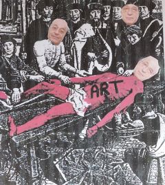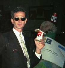 On the internal side of the Can I glued a cent coin painted in yellow as money art, glued next to the cover of the 1987 Dematerialization of Art Symposium at New York University,. Next to them I glued a collage of a middle ages vivisected body of an alive prisoner opened by the medical school, with different faces of myself watching the opening.