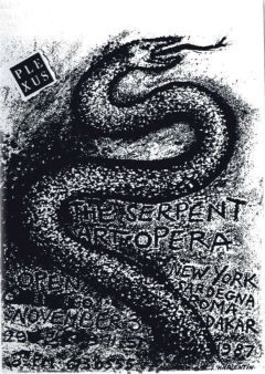 In the same time, in New York, with Shalom Newman at Fusion Arts, it was organized a party-event with a fire performance by Paolo Buggiani and his Minotaur, to present the Plexus Purgatorio Book, made by one single original page from all artists from the 1986 Plexus Art Opera “Eve”, to promote a broader participation from New York to Sardinia for the Serpent event.
