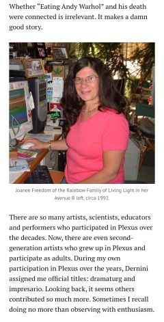 On May 21, 1988, the Plexus Open Call Art Slavery Photo Shot Manifesto, as a multi-fractal 900 artists faces photo,was launched from the Rivington School, Lower East Side NY. freedom of art.
