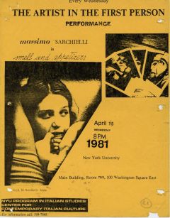 When I moved to New York, living in a loft in Broome Street, in Soho, I started to give great parties to meet people to start to know the cultural and artist life in New York. Then, I conceived the creation of the NYU Center for Italian Contemporary Culture, and, as executive director, I organized the programme "THE ARTIST IN THE FIRST PERSON", with artists organizing and producing their own presentations.