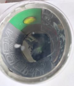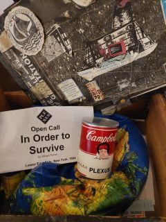 On the internal side of the number zero Plexus Can, I glued one cent coin, painted in yellow, as money art, glued next to the cover of the 1987 Dematerialization of Art Symposium at New York University. Next I glued a collage of a middle ages vivisected body of an alive prisoner opened by the medical school, with different faces of myself watching the opening.