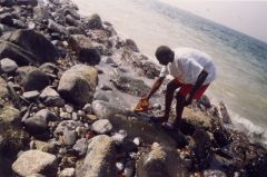 With a great surprise by the artists of Dakar, I saw myself to be invited in Italy. I would like to say, that I always dreamed to go in Europe. The dream was concretized, I was with 160 artists of 23 nationalities, arrived on July 4, 1987, in Sardinia, Gavoi, for the first international market of slaves of art, -Il Serpente di Pietra+, Plexus Art Co-Opera ní 4, held in a megalithic sanctuary at the center of the Mediterranean sea, the hearth and as well as the lung of the Western culture, linked by an European and American group, Dax Digital Art Exchange, of Carnegie Mellon University in Pittsburgh (USA) with the intelligently equipped computers by Prof. Franco Meloni of the Department of Physics of the University of Cagliari in Italy.