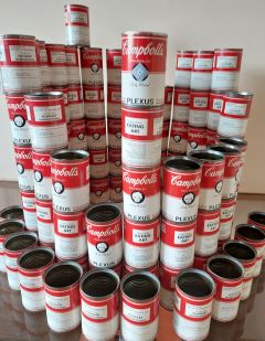 It looks like an Andy Warhol's Campbell soup can, if it is exposed to a beholder of the artworld. Its label is red and white. The "e" of Campbell is changed to an "o" in Campboll's, It has a central circle with the words "Dematerialized Andy Warhol" and Andy Warhol's face which hold the center of attention. On its bottom the word PLEXUS.
