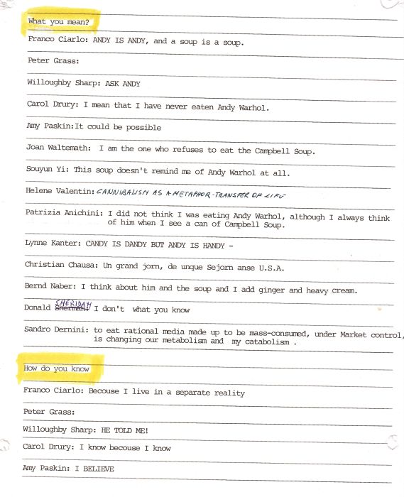 1987 Do you think that is possible to eat Andy Wharol by eating a campbell's soup can?, New York