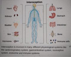 BODY AND MIND ARE IN INTEROCEPTION  INVOLVING MANY DIFFERENT physiological systems like the cardiorespiratory system, gastrointestinal system, nociceptive system, endocrine and immune systems.